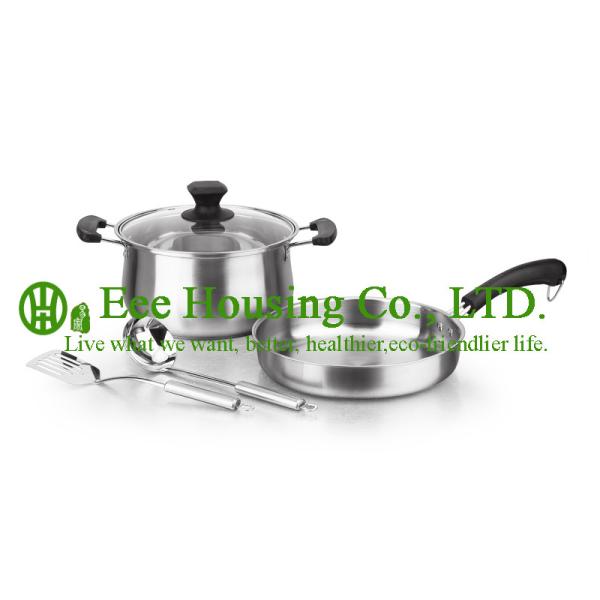2016 hotsale new kitchen products for stainless steel 4 pieces cookware set including 24cm fry pan wok and 24cm soup pot and 11.5cm Truner and Spoon